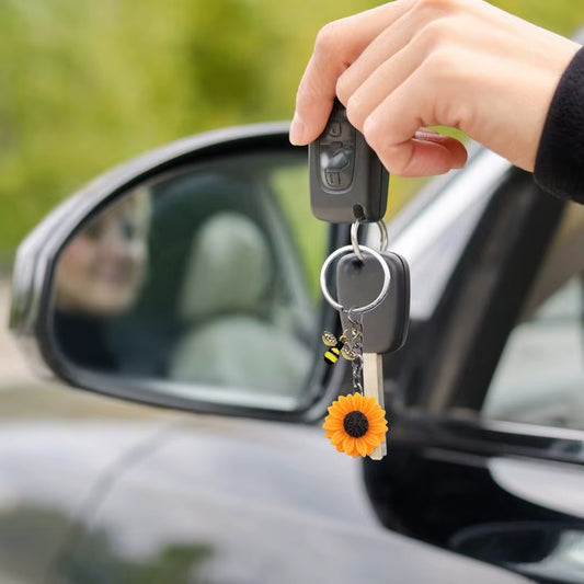 Sunflower Keychains Sunflower Key Chain Bee Keychain Clips Hooks Keyring Friendship Keyring Sunflower Inspirational Keyring For